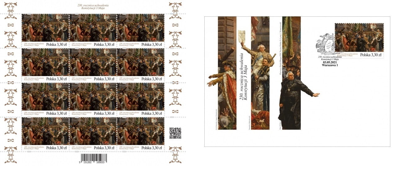 230. rocz. uchwalenia konstytucji 3 Maja arkusz + FDC